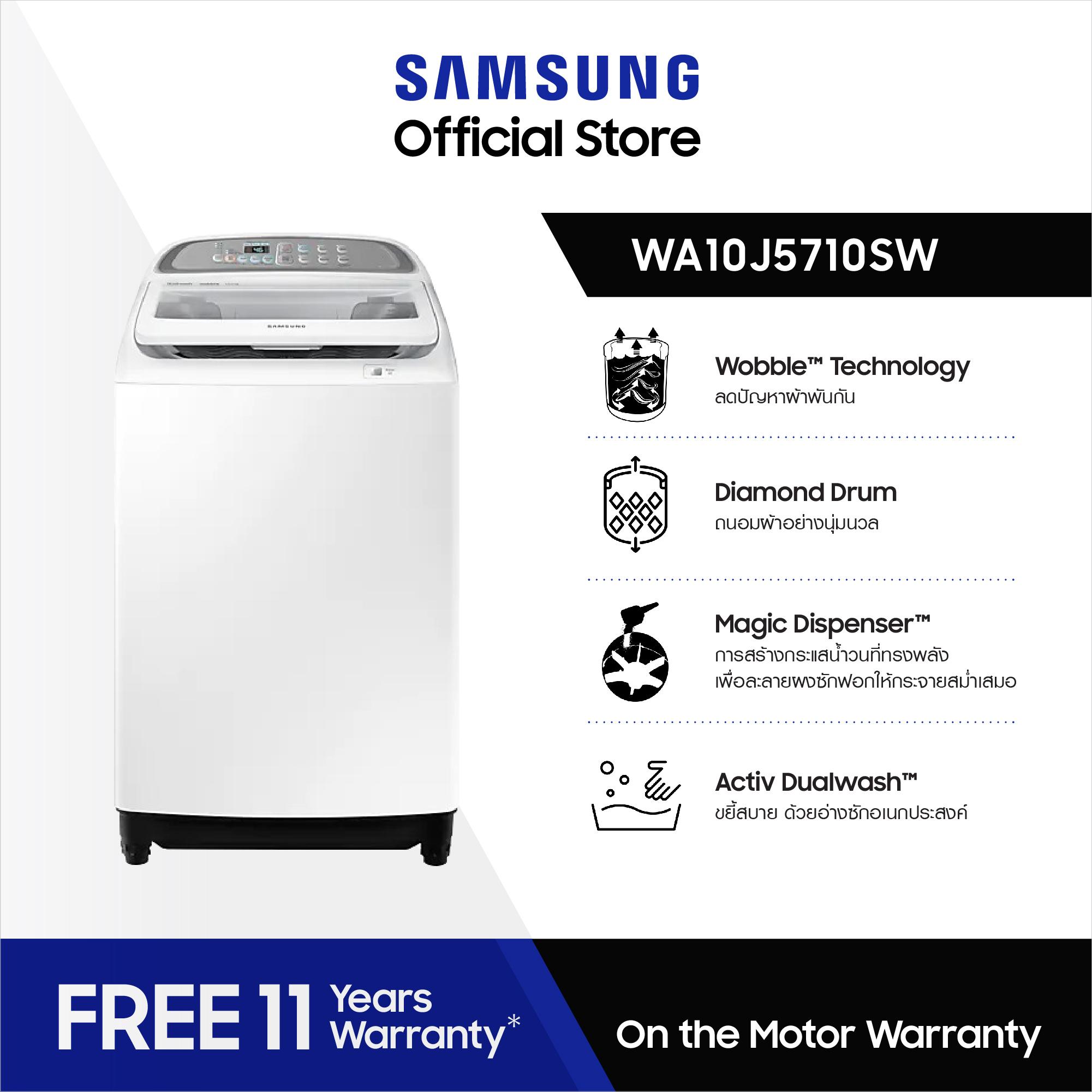 Samsung เครื่องซักผ้าฝาบน รุ่น WA10J5710SW พร้อมด้วย Activ Dualwash, 10 กก.